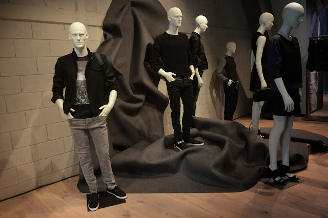 Logramos apreciar las líneas que dirige la mente creativa de Kevin Carrigan y que en el próximo Otoño-Invierno 2015 podremos adquirir. Una sala en tonos oscuros y minimalistas con una hermosa lámpara de piso, iluminaba a los estáticos modelos con distintos outfits para los días frescos.
